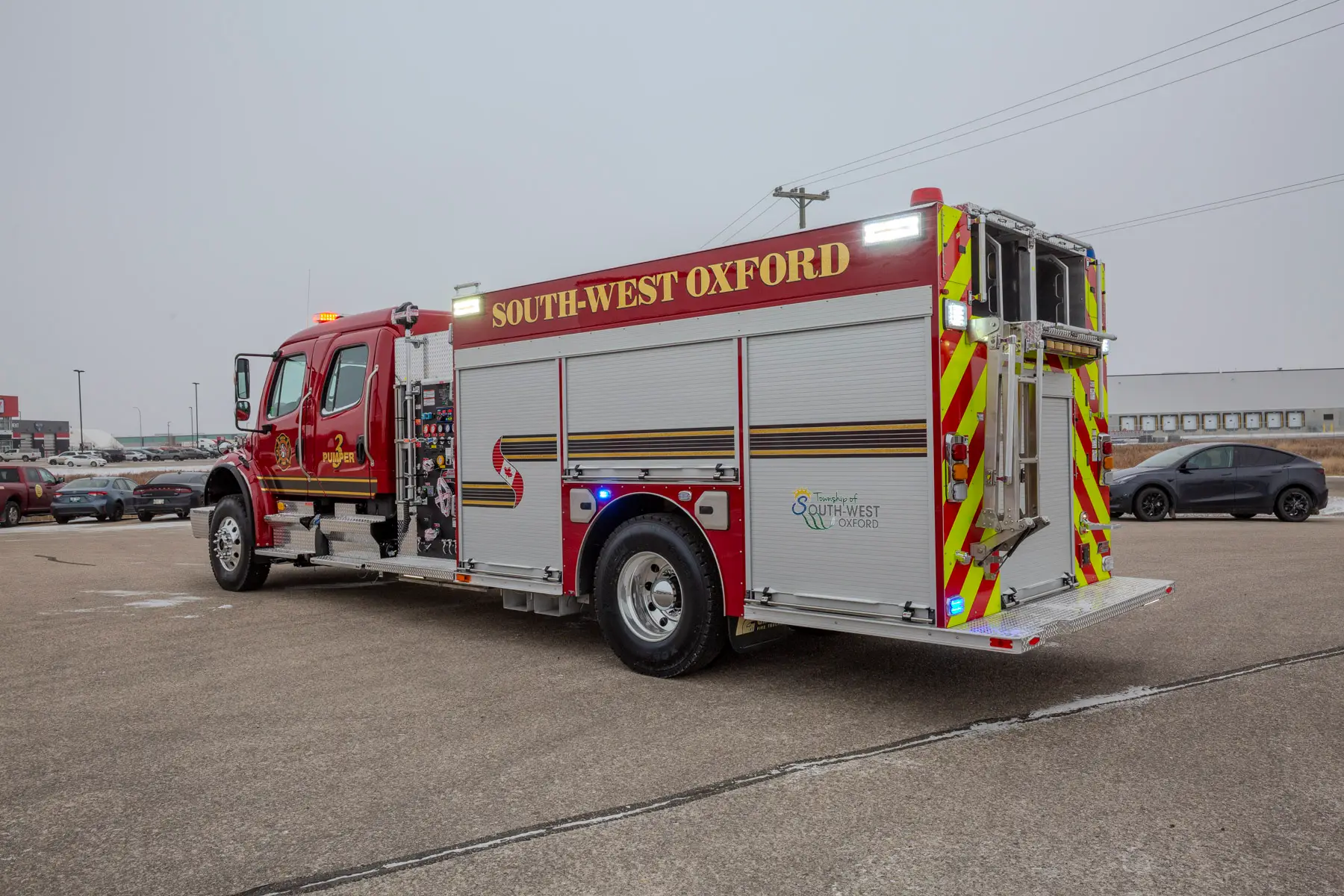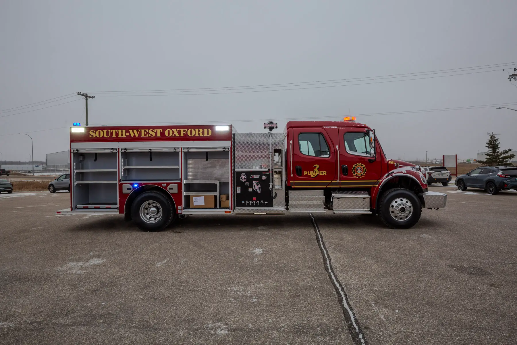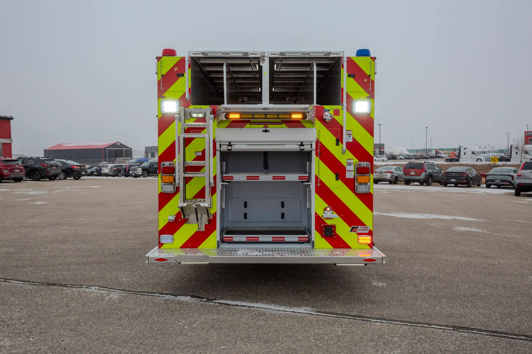 - Storage for (2) 10′ x 6″ lengths of hard suction in upper body