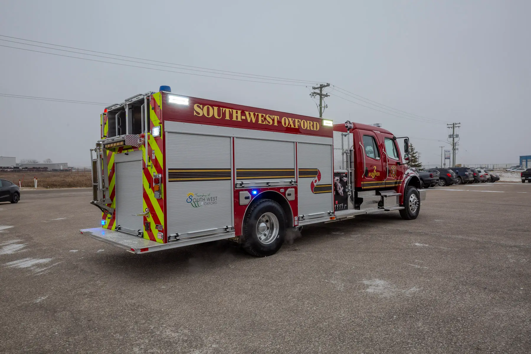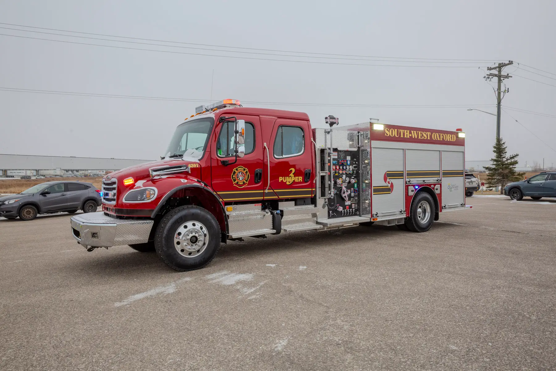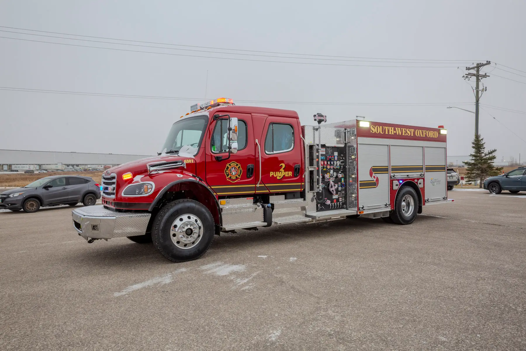 - Storage for (2) 10′ x 6″ lengths of hard suction in upper body