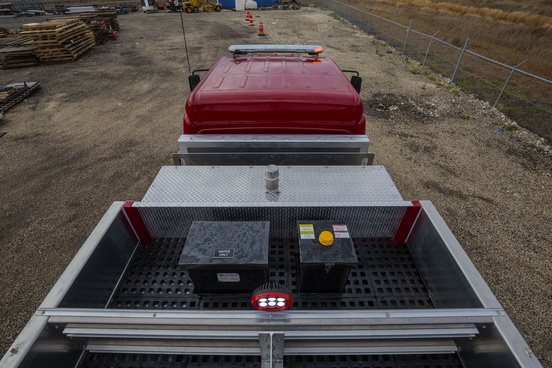 - Rooftop coffin boxes for hose, ladders, and long tools
